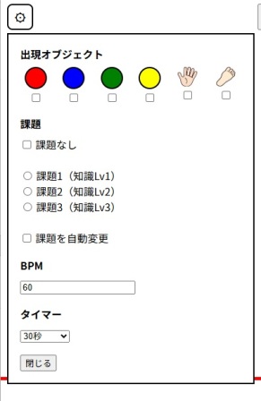 • 課題:スタート前に課題が出題されます。課題をこなしながら、ルール通りに体も動かす。課題に答えるタイミングと、体を動かすタイミングを同期させる必要はありません。